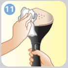 Chờ bàn ủi hơi nước đứng nguội trong 60 phút và sử dụng vải mềm để lau mặt đế bàn ủi. Quan trọng: Không cho nước, giấm, chất tẩy cặn hoặc các hóa chất khác vào bàn ủi